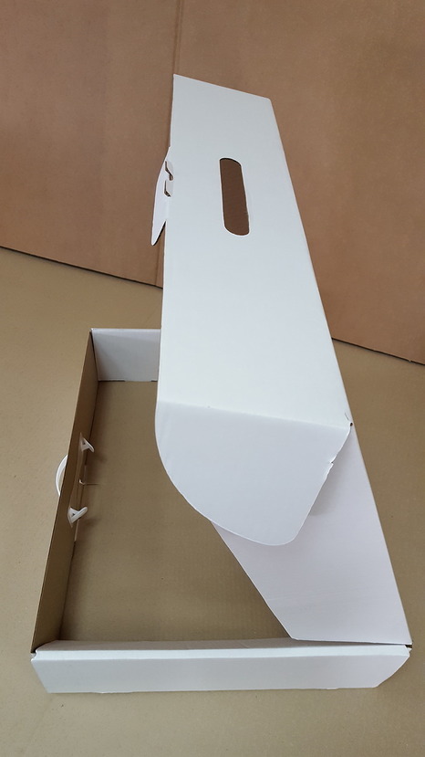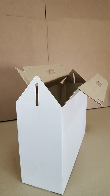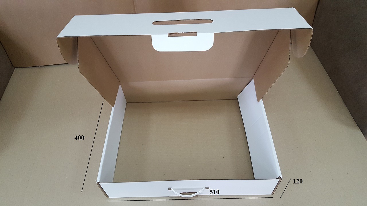 Такой картонный чемодан внутри снабжается дополнительными секциями под бутылки. Гофрокороб с ручкой служит для упаковки компьютера и другой офисной электроники. Коробка с картонной ручкой может служить для упаковки изделий кондитерского производства. Картонная упаковка с ручкой может использоваться для упаковки кухонной посуды и столовых принадлежностей. Короб с ручкой широко используется для упаковки изделий для пикника, спорта и отдыха. Например, короб с ручкой используется для упаковки шампуров и средства для розжига костра.